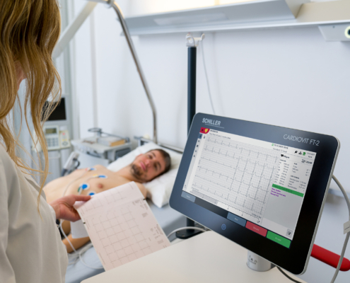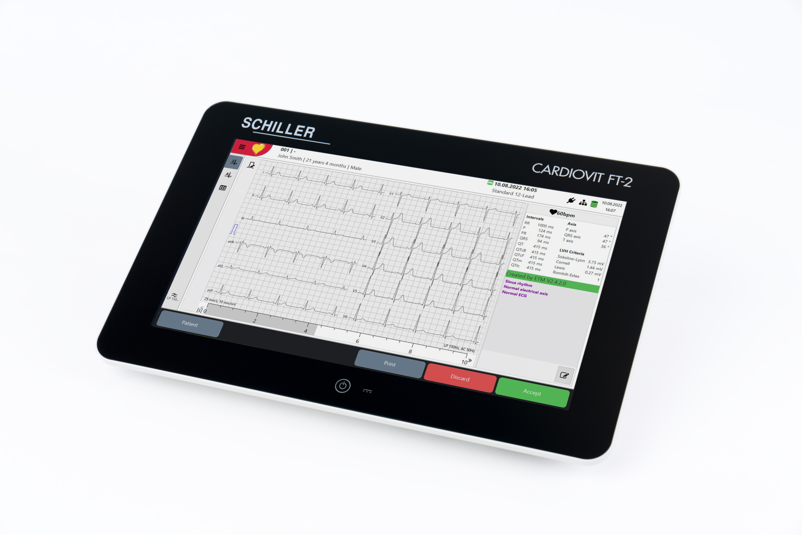 El CARDIOVIT FT-2 Es la nueva unidad de 12 canales de SCHILLER, diseñada para registrar, visualizar y realizar mediciones de ECG en reposo.