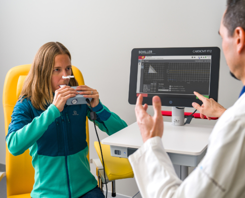 • ECG reposo con el algoritmo de interpretation de ECG de SCHILLER ETM que incluye ETM Sport.